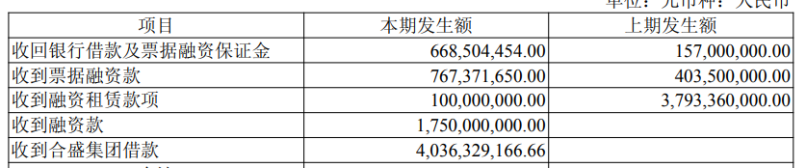 此外,收到、支付其他筹资活动有关的现金项目中,合盛硅业收到合盛集团借款40.36亿元,同期归还合盛集团借款36.45亿元。上半年末的现金及现金等价物余额仅为1.47亿元,同比直降81.93%。
