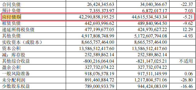 在整个券商板块中,天风证券的融资数量并非最高,根据Wind数据,截至2024年上半年,天风证券的应付债券金额为422.91亿元,在上市券商中排名第14位。但是,从应付债券金额占总资产的比例来看,天风证券以44.8%的占比高居所有上市券商之首,而上市券商的平均水平仅为15.36%,天风证券的这一数据是上市公司平均的三倍。这一比例的高企,结合公司目前亏损的半年报来看,反映出天风证券在资本结构上可能面临一定的财务风险。