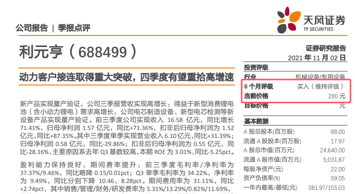除了融资不停外,天风证券在过去两年的研报也同样“触目惊心”。数据显示,截至9月10日收盘,近两年跌幅前三的个股依次为利元亨、金博股份、派能科技,三者跌幅均接近9成,然而不巧的是,天风证券对于这三家公司,均在高位发布了研报,其中利元亨、派能科技更是给出了买入评级。然而以9月10日收盘价计算,利元亨的股价较天风证券发布研报时下跌超90%,金博股份、派能科技的跌幅也在80%以上。
