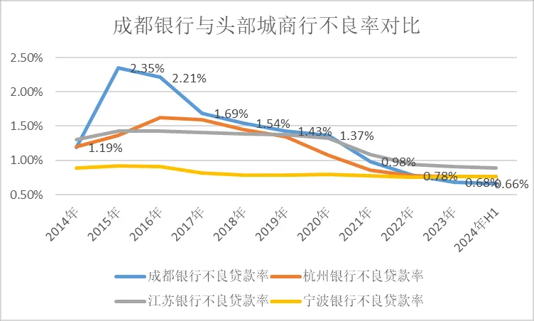 显然,成都银行凭借在成都以及四川省基建等涉政类项目的优势,资产规模与营收利近年来都处于双增长趋势,资产不良率整体也处于低位。不良贷款率实现八年连降。