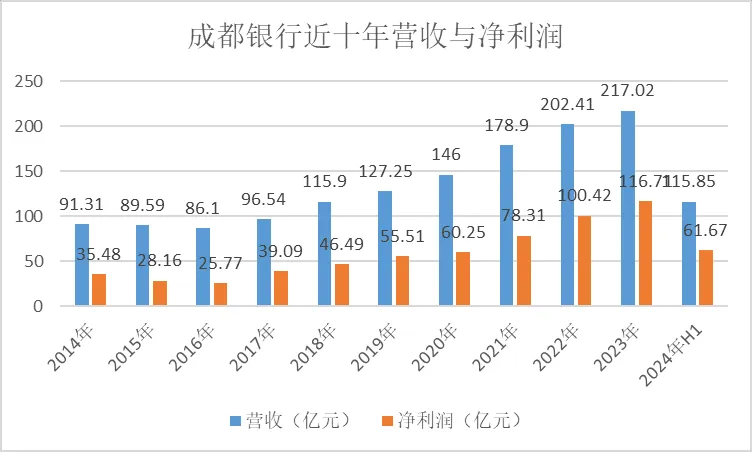 财报显示,2024年上半年,该行营业收入115.85亿元、归属于母公司股东的净利润61.67亿元,处于增长态势。