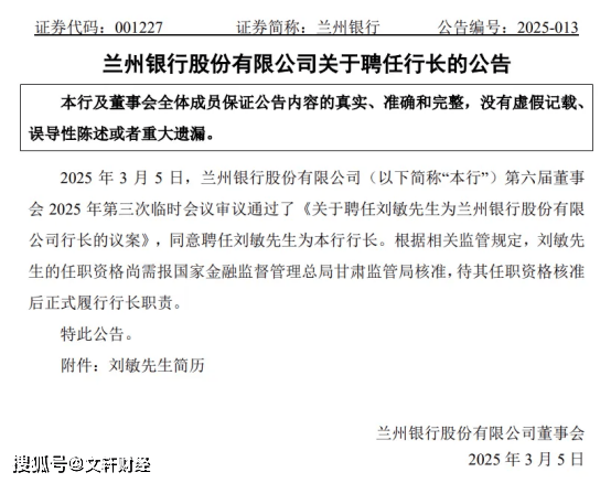 值得一提的是,刘敏填补了长达半年的行长空缺。2024年8月,刘敏被聘为兰州银行副行长之一,如今履新不足一年。