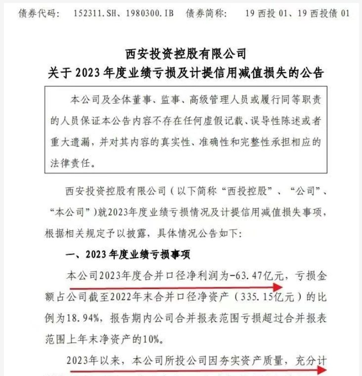 2024年8月1日,长安信托前控股股东西安投资控股发布2023年度业绩亏损及计提信用减值损失的公告:2023年,西安投资控股净亏损63.47亿元,因长安信托经营亏损并表导致。