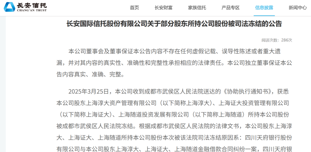 此前,除踩坑宝能之外,长安信托还被恒大拖累,涉及的融资方包括当代系、中天金融、宝能、蓝光发展、福晟,及华业、正邦等上市公司,长安信托近年来已多次踩雷。