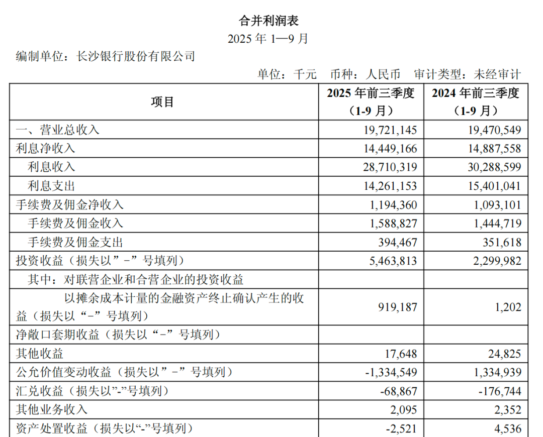 财报显示,截至2025年三季度末,长沙银行总资产约1.24万亿元。前三季度,该行实现营业收入197.21亿元,同比增长1.29%;实现归母净利润65.57亿元,同比增长6%。