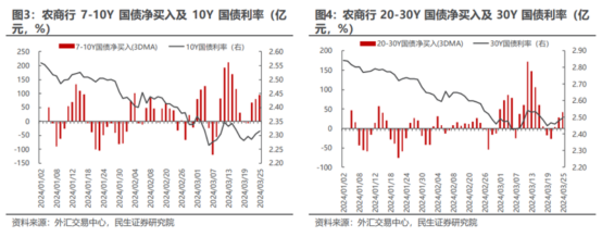 德邦证券分析师徐亮也表示,从历史分期限行为来看,除了1年内品种外,农商行主要偏好7-10年期品种,自2019年以来的合计净买入均显著为正。对于30年品种,其在2023年的表现为显著净卖出,而在2024年表现为较大规模的净买入。