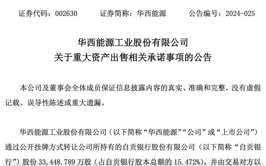 不仅华西能源,运机集团近期也完成了出售自贡银行股份的出清。