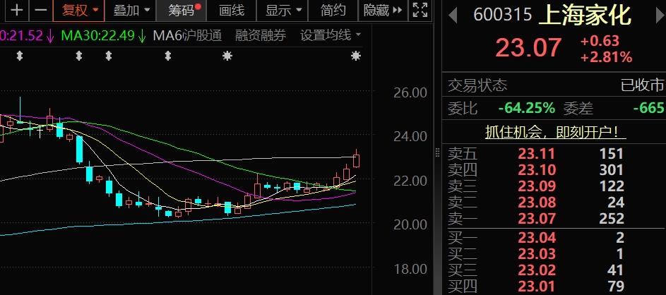 7月23日,A股美容护理板块午后走高拉升,成分股嘉亨家化(300955.SZ)、润本股份(603193.SH)涨停,另有水羊股份(300740.SZ)、华业香料(300866.SZ)、可靠股份(301009.SZ)、上海家化(600315.SZ)等成分股跟涨。