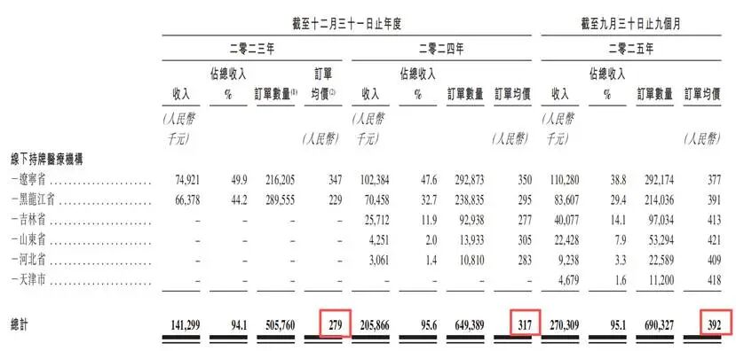 2023年、2024年、2025年前9个月,誉研堂的订单均价分别是279元、317元、392元。