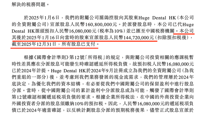 沪鸽口腔此次IPO最受争议的焦点,莫过于IPO前夜的“清仓式分红”。招股书显示,2025年1月16日,公司在首次递表港交所前夕,向股东宣派并派付股息1.45亿元;叠加此前分红,2022-2025年1月累计分红高达2.25亿元,几乎等于2022-2024年三年净利润总和(2.28亿元)。