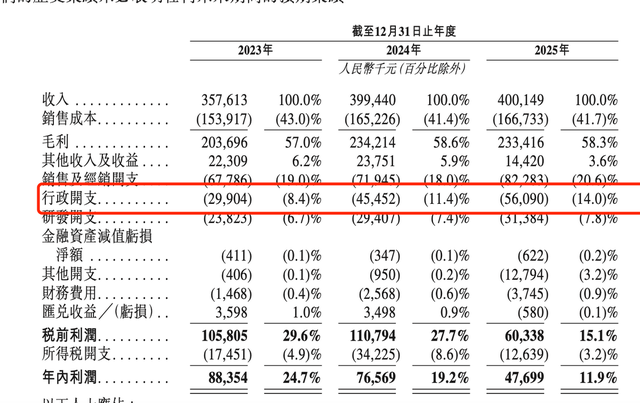沪鸽口腔的净利润暴跌核心原因首先是费用刚性攀升侵蚀利润空间。在2023-2025年,公司销售、行政、研发三项费用合计从1.22亿元增至1.7亿元,增幅39.7%,2025年占营收比重高达42.42%。其中行政开支从2990.4万元增至5609万元,近乎翻倍,主要用于印尼建厂筹备与海外扩张人力成本;销售开支因海外渠道拓展持续增加,但海外收入并未同步增长,投入产出严重失衡。