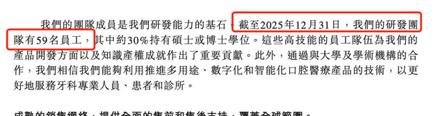 2023-2025年,公司研发开支占营收比重分别为6.7%、7.4%、7.8%,看似逐年提升,但远低于国际巨头10%以上的研发投入比例,也落后于国内头部同行。研发团队仅59人,核心技术集中在基础耗材的生产工艺,缺乏高分子材料、数字化技术等底层核心技术。