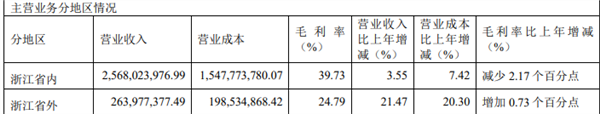 作为收入的大本营,通策医疗去年在浙江省内的毛利率为39.73%,高于省外。但由于同期营业成本增速高于营收增速,浙江省内的毛利率同比减少了2.17个百分点。(本文首发证券之星,作者|刘凤茹)