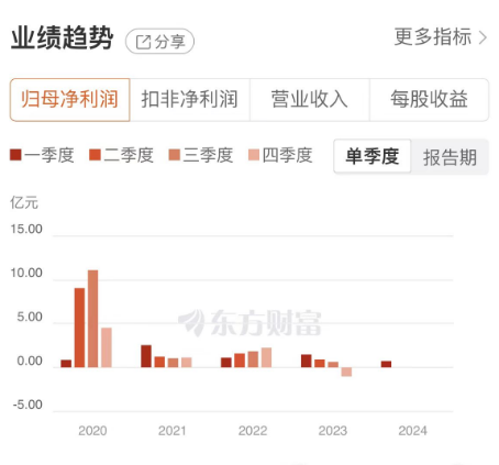 然而好日子仅仅维持了一年,振德医疗的业绩就开始出现下滑。2021年至2023年,振德医疗实现营收分别为50.92亿元、61.38亿元、41.27亿元;归母净利润分别为5.96亿元、6.80亿元、1.98亿元。相比巅峰时期,整体的下滑趋势非常明显,并且公司在去年第四季度出现了上市以来单季度首次亏损的情况。