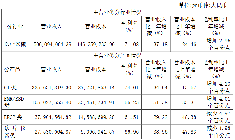 分产品来看,2023年安杰思的GI类(止血闭合类和活检类)产品营收达到3.36亿元,同比增长34.04%;毛利率高达74.01%,相比上年同期增加了4.13个百分点。