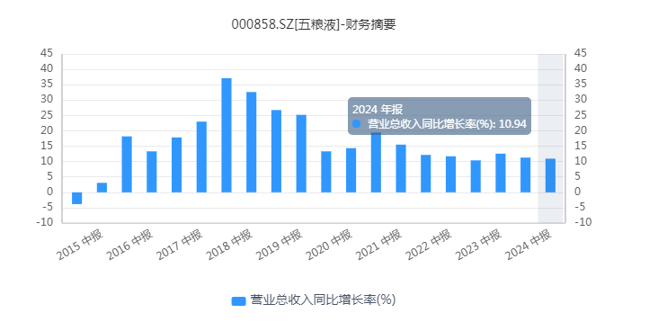 虽然自2016年起,五粮液的半年度业绩连续九年实现了营业收入、归母净利润的同比双位数增长,但同比增速均已创下近年以来新低。