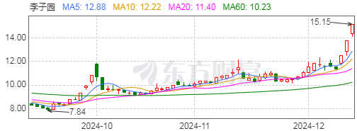 12月12日,李子园涨停,已连收3个涨停板。截至收盘,该股报15.15元,最新A股总市值达59.76亿元。