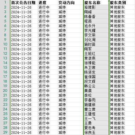 11月26日,李子园还发布了一则股东集体减持的公告。公告显示,公司股东朱卫君、徐樟能等35名股东因个人资金需求,拟通过集中竞价交易方式减持公司股份,减持总数不超过301.86万股,即不超过公司股份总数的0.77%。