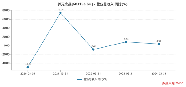 从消费场景角度看,每年春节前后,是“六个核桃”大卖的时期,2022一季度至2024年一季度,养元饮品收入分别同比增长:-8.42%、8.82%、3.91%,其中2022年的增幅系去年同期基数较低。对比同样是植物蛋白饮料上市公司的承德露露,其在前述各期的营收分别同比增长14.95%、2.08%和7.53%,总体上,承德露露的收入增长更加稳定。