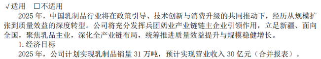 在2024年年报中,天润乳业计划今年实现乳制品销量31万吨,同时将2025年营收目标设定为30亿元,即销量和营收需各自同比增长5.06%和6.53%。不难看出,公司设立的业绩指标较为谨慎,不过,考虑到当前国内原奶价格仍处于下行通道,行业性的成本压力与市场竞争尚未明显缓解,这一业绩目标的实现,仍需依赖疆内、疆外市场的协同发力。