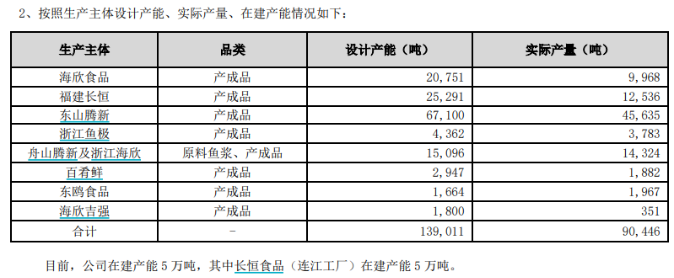 证券之星注意到,海欣食品各生产主体的产能利用率呈现显著分化。2023年至2024年,东鸥食品产能持续超负荷运转,利用率分别达113.6%和118.2%;与之形成鲜明对比的是,公司其他生产主体产能普遍不饱和——2024年整体产能利用率仅65.06%,其中设计产能6.71万吨的东山腾新利用率为68%,而生产主体海欣食品及福建长恒的利用率更分别低至48.04%和49.57%。