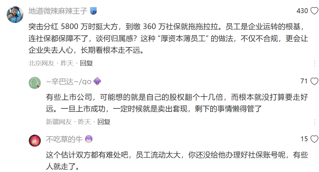 数据显示,截至2025年第一季度末,公司全职员工仅1789人,而兼职员工达3168人,外包员工更是多达6124人。资料显示,公司在第一季度为外包员工支付了1.18亿元,人均月工资约6430元,这些人员的社保缴纳情况成为监管关注的重点。