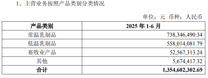 从需求层面看,当前乳制品的需求表现出低温好于常温的趋势。这一特征也直接反映在天润乳业的产品收入结构中。报告期内,天润乳业常温乳制品收入同比下滑约5.38%至7.38亿元;低温乳制品收入同比下滑约3.79%至5.58亿元,其中进入第二季度,市场压力进一步传导,公司主力产品均面临明显承压:常温和低温乳制品收入分别同比下滑6.1%和6.17%。
