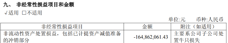 受子公司处置牛只产生损失的直接影响,天润乳业在报告期内的非流动性资产处置损益呈现亏损状态,亏损金额达1.65亿元。2024年至今年上半年,公司非流动性资产处置损益的累计亏损规模已达到约2.79亿元。