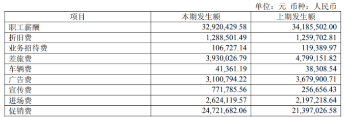 费用端方面,报告期内,公司销售费用和管理费用分别同比增长3.07%和3.38%。具体来看销售费用的构成,促销费用以2472.17万元的规模,在各项支出中仅次于职工薪酬,且这一费用同比增幅显著,达到15.54%,侧面反映出,行业竞争加剧背景下,公司为抢占市场份额、维持产品动销,加大终端促销投入。