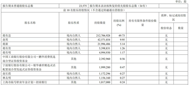 实控人为鹿有忠、赵英和鹿新一家,三人合计持股约65%,股权价值约35亿;鹿有忠的兄弟鹿有贵、鹿有明,也分别持股1.26%、1.17%。公开信息显示,鹿游即是鹿有贵之子。