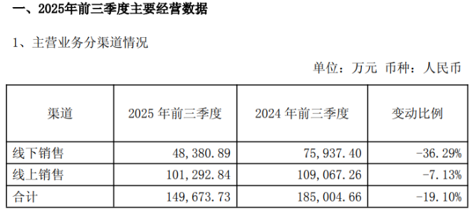 2025年前三季度,公司业绩颓势未能扭转,期内营收和归母净利润双双下滑,其中在关键的第三季度,公司单季营收与归母净利润分别同比下降23.63%和41.09%,未能支撑起全年业绩规模。对此,公司管理层在业绩说明会中解释,今年(2025年)中秋较去年同期延后,部分营收体现在10月份。