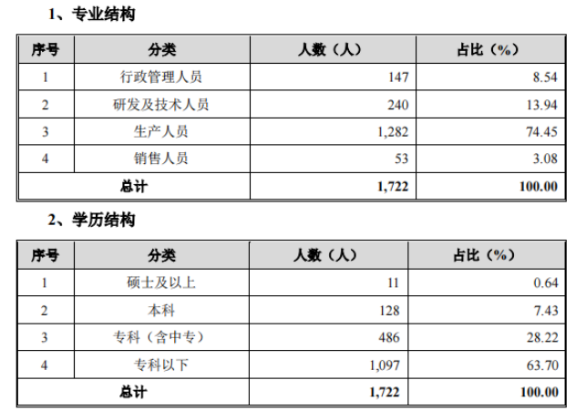 截止2023年底,公司共有研发及技术人员240人,员工中硕士以上学历仅11人。目前,公司拥有专利技术77项,其中,发明专利11项,多项专利技术正在申请中。