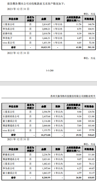从整个产业链角度看,苏州天脉的行业话语权并不高。这一点从应收账款之中可见一斑。