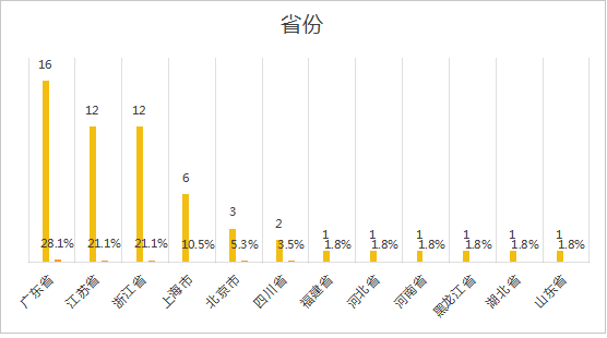 从地级市看,深圳有7家,占比12.3%;宁波有5家,占比8.8%;常州、江门、绍兴、苏州、东莞、杭州、惠州、南京、南通、无锡等地各有3家。