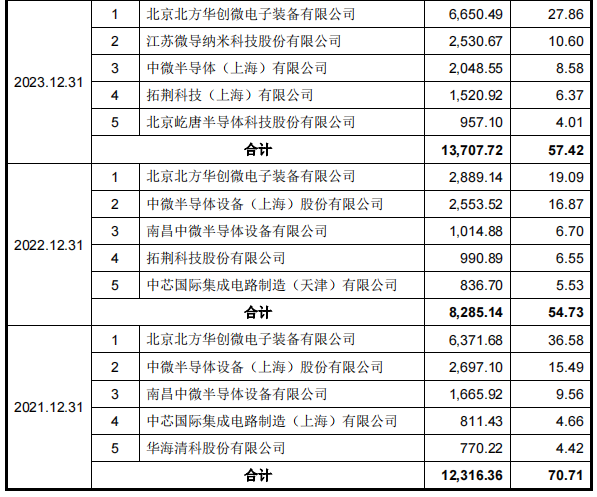 截至2023年末,先锋精科应收账款增长较多的主要客户为北方华创、微导纳米及拓荆科技,均为行业头部企业。其中,北方华创应收账款余额较2022年末上升3,484.32万元,拓荆科技应收账款余额较2022年末上升1,236.35万元,是应收账款余额上升的主要因素。