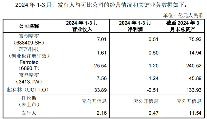 在此次IPO申报材料中,先锋精科选取了富创精密、珂玛科技、Ferrotec、京鼎精密、超科林等5家公司作为其认可的同行业可比公司。从经营情况和关键业务数据对比情况看,先锋精科在整体经营规模与行业龙头企业仍有一定差距。
