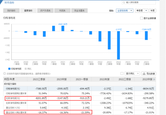 具体来观察这家公司的业绩,可以发现公司已连续三年扣非净利出现亏损。营业收入的表现也不容乐观,数据连年下滑。从今年前三季度的情况看,抗病毒面料也未能阻止公司营收下滑的颓势,同时扣非净利也呈现持续亏损的态势。
