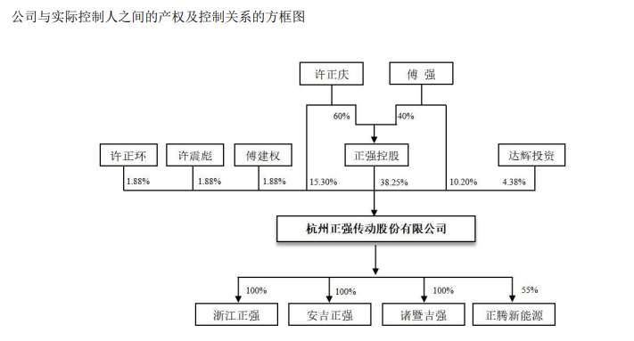 从股权结构看,正强股份是一个典型的家族企业。公司实际控制人许正庆、傅芸、傅强合计控制正强股份超60%的股份,处于绝对控股地位。