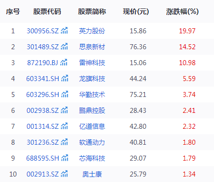 其中,英力股份今日触及涨停板。公司是国内笔记本电脑结构件领域的领先企业之一,主要客户为联宝、仁宝、纬创等大型笔记本电脑代工厂。