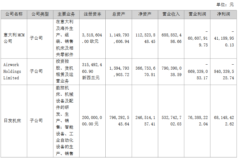 据年报披露,日发精机下辖日发机床公司、日发航空装备公司、意大利MCM公司、浙江玛西姆公司、Airwork公司等。其中,Airwork和意大利MCM等公司正是此次问询函关注的焦点。