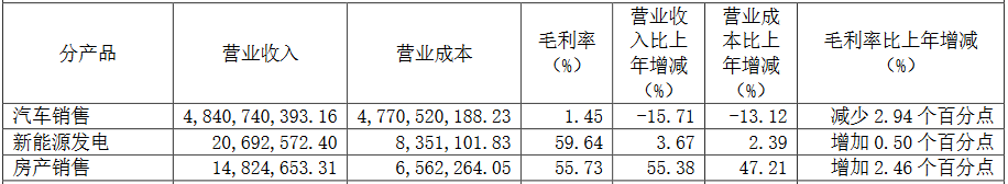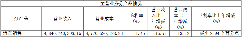 申华控股在业绩报告中指出,2023年国内市场形势严峻,公司的主力销售区域华东地区遭受严重冲击,各家4S店都受到了不同程度的影响,客流下滑和物流不畅,产品供应节奏被打乱,对汽车销售业务造成很大压力。2023年,申华控股的汽车销售业务毛利率仅为1.45%,相比上年同期减少了2.94个百分点。