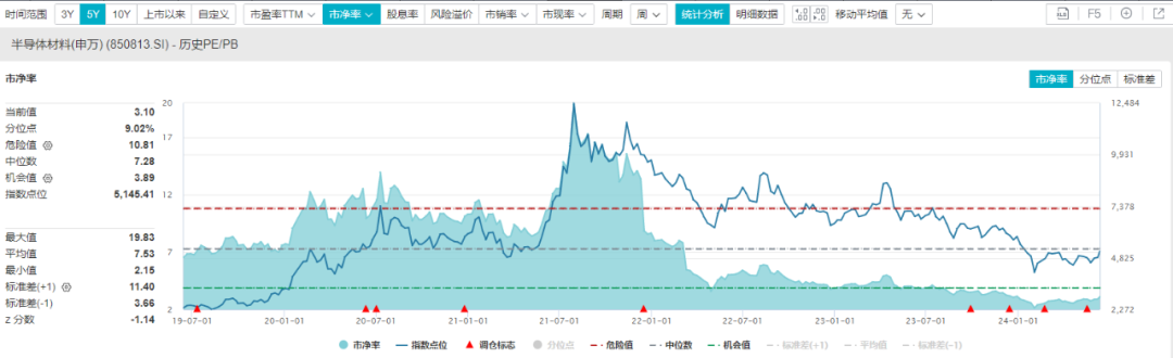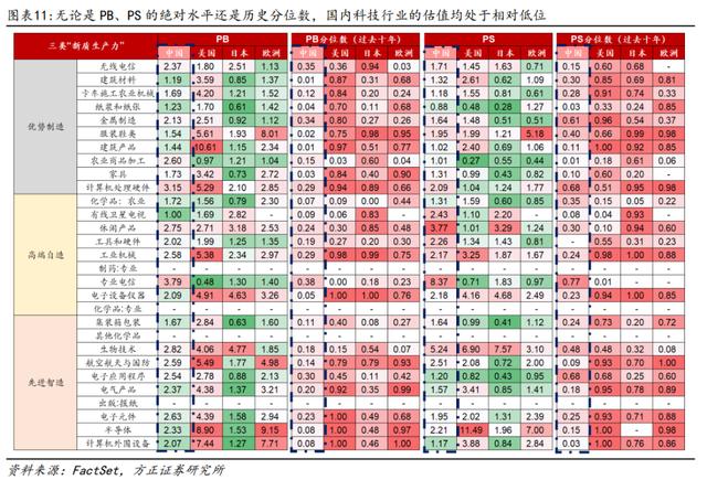 方正证券认为,“科特估”与“中特估”相同,并不是随便拔高估值,而是修复相对国际水平来说偏低的估值。相比于海外而言,“先进智造”相对低估。纵向对比来看,Wind数据显示,截至6月11日,半导体行业市净率回落至3.51倍,半导体材料设备行业市净率回落至3.1倍,都处于近5年分位数的10%以下。
