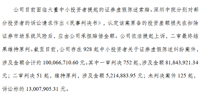 因连续三年财务造假,索菱股份还面临大量投资者索赔。2024年3月,索菱股份发布投资者诉讼进展公告称,公司存在928起中小投资者关于证券虚假陈述纠纷案件,涉及金额合计超过1亿元。如此来看,索菱股份财务造假相关事项的后续影响或仍未完全消除。