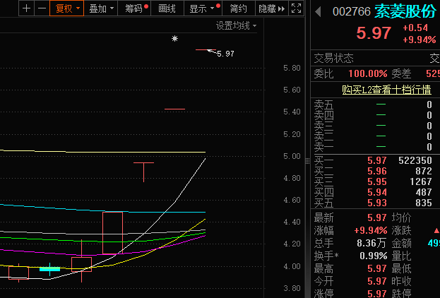 6月18日盘后龙虎榜显示,量化打板(华鑫证券上海分公司)资金连续三个交易日累计买入1075.62万,净额为767.87万。截至6月20日中午收盘,索菱股份依然牢牢封住涨停,报5.97元/股。
