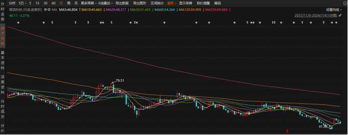 然而,股价短暂拉升后,锦浪科技又开始了连续下跌的走势。7月4日报收46.11元/股,跌幅3.27%,7月2日至4日区间跌幅7.72%,目前总市值185亿元。值得一提的是,当期股价已较年内高点79.51元/股(前复权)回撤42%,总市值蒸发约134亿元。