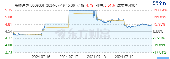 截止7月19日收盘,莱绅通灵报价4.79元/股,跌幅4.20%。