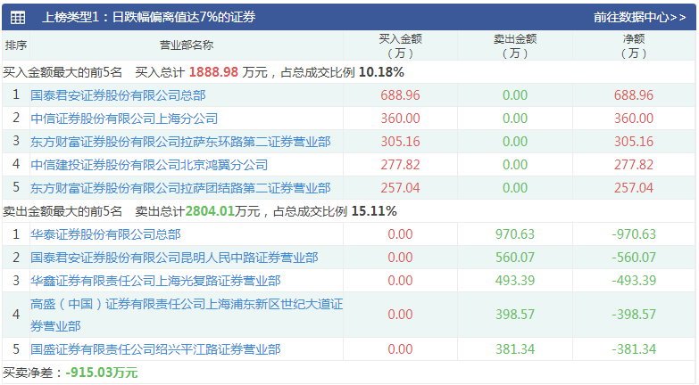7月18日,莱绅通灵报收5.00元,涨幅-6.54%,成交量3722.77万股。因日跌幅偏离值达7%再度登上龙虎榜,多家知名游资身影闪现。