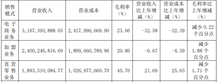 面对消费降级浪潮与量贩零食等新兴渠道的冲击,良品铺子正逐步剥离“高端零食”标签,但如此也可能陷入“高端定位失守、大众市场又难敌竞品”的尴尬境地。反映在2023年业绩上,其直营业务收入同比增长21.69%,但规模更大的加盟业务却承压明显,收入同比下滑6.67%至24亿元。