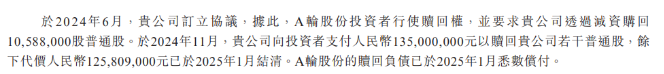 为引入外部资金缓解资金压力,溜溜果园于2024年12月与芜湖华安基金与芜湖兴农基金签订投资协议,两位投资者作为公司D轮融资投资方向公司合计投资7500万元。该轮融资亦附带对赌协议,包括若公司未在2025年12月31日前完成上市,投资者可要求公司及控股股东(或其配偶)赎回投资;赎回价格按“投资本金加上每年6%的单利利息减去已支付的累计收益或股息”计算。