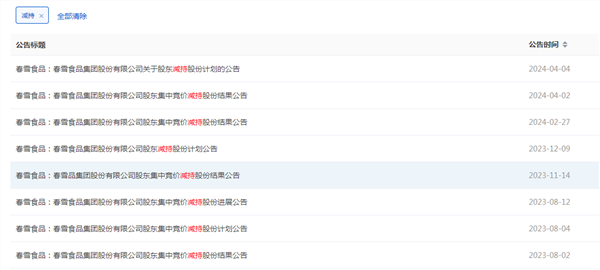 此外值得注意的是一方面春雪食品股价已经低于发行价;另一方面公司的股东们在二级市场减持套现,例如2024年4月4日、2024年4月2日、2023年12月9日等,公司分别公告股东减持情况,整体看各类股东密集减持公司股票。